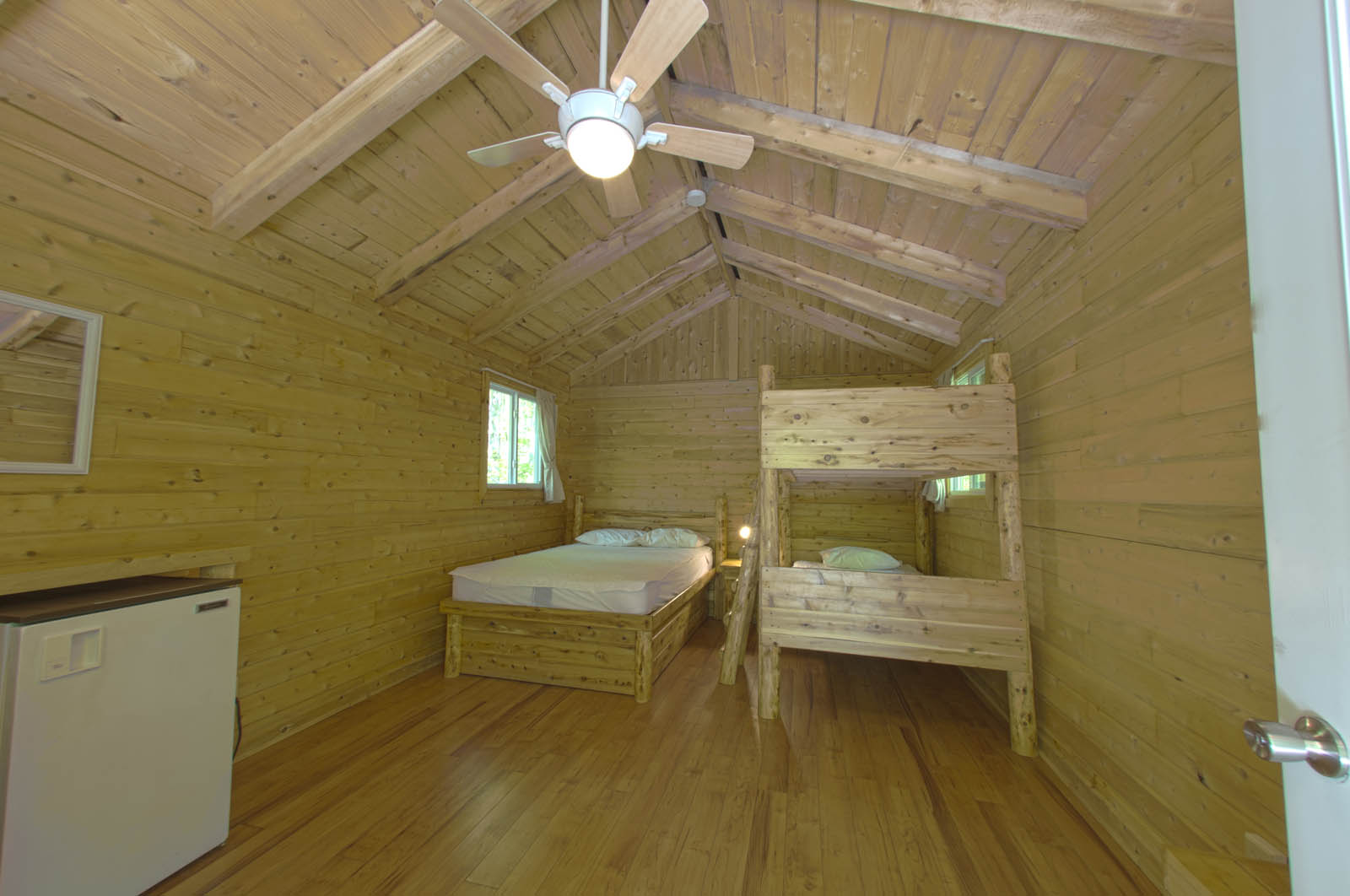 This camping cabin sleeps 4, and you can enjoy everything the resort has to offer!