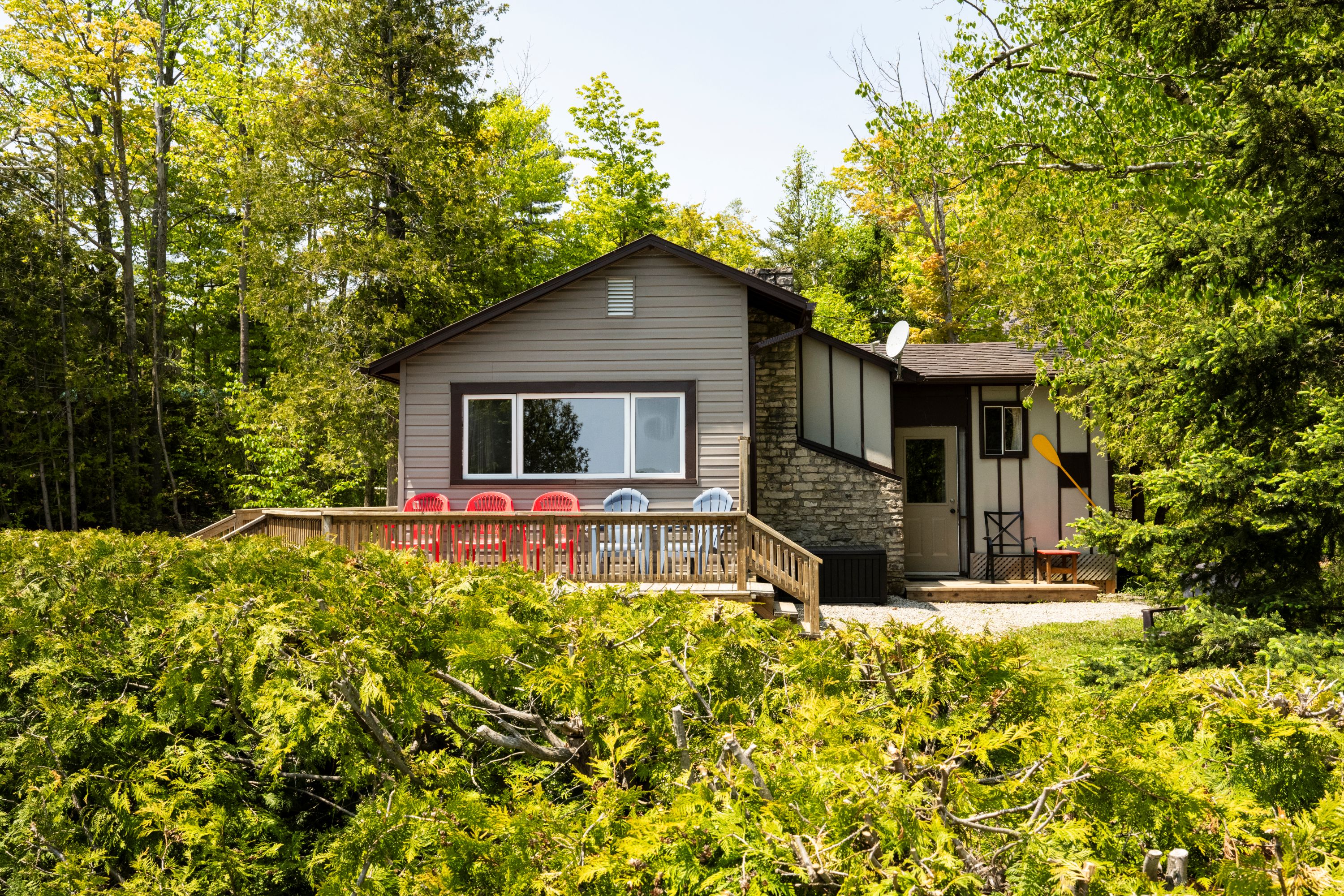 Enjoy relaxing on your own private deck with a great view of Miller Lake. Our three bedroom cottage sleeps a maximum of six people.